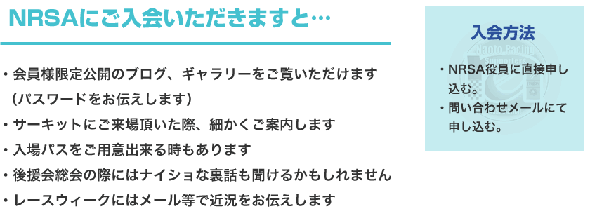 NRSA会員(遠藤直人後援会)様、及び企業スポンサー様を募集しています。